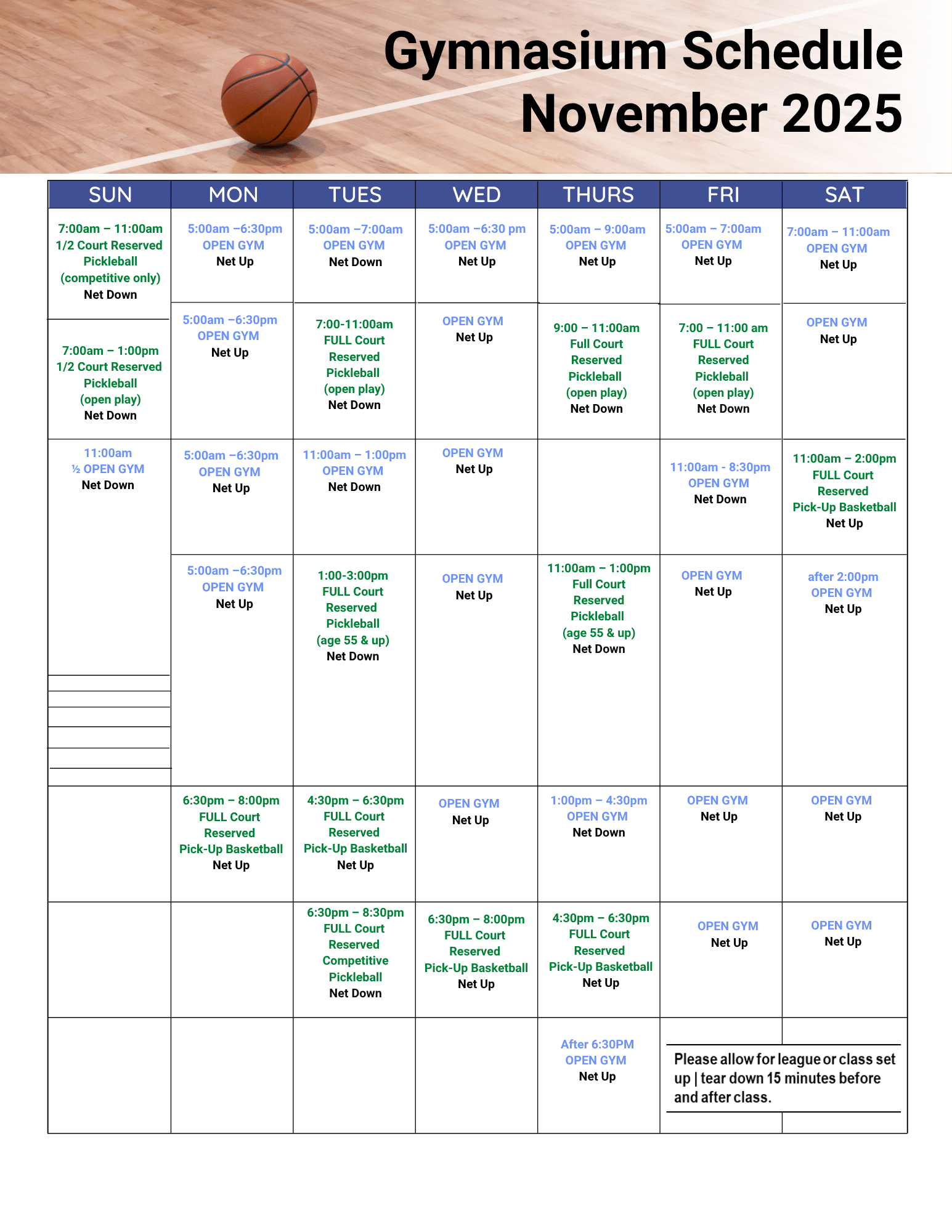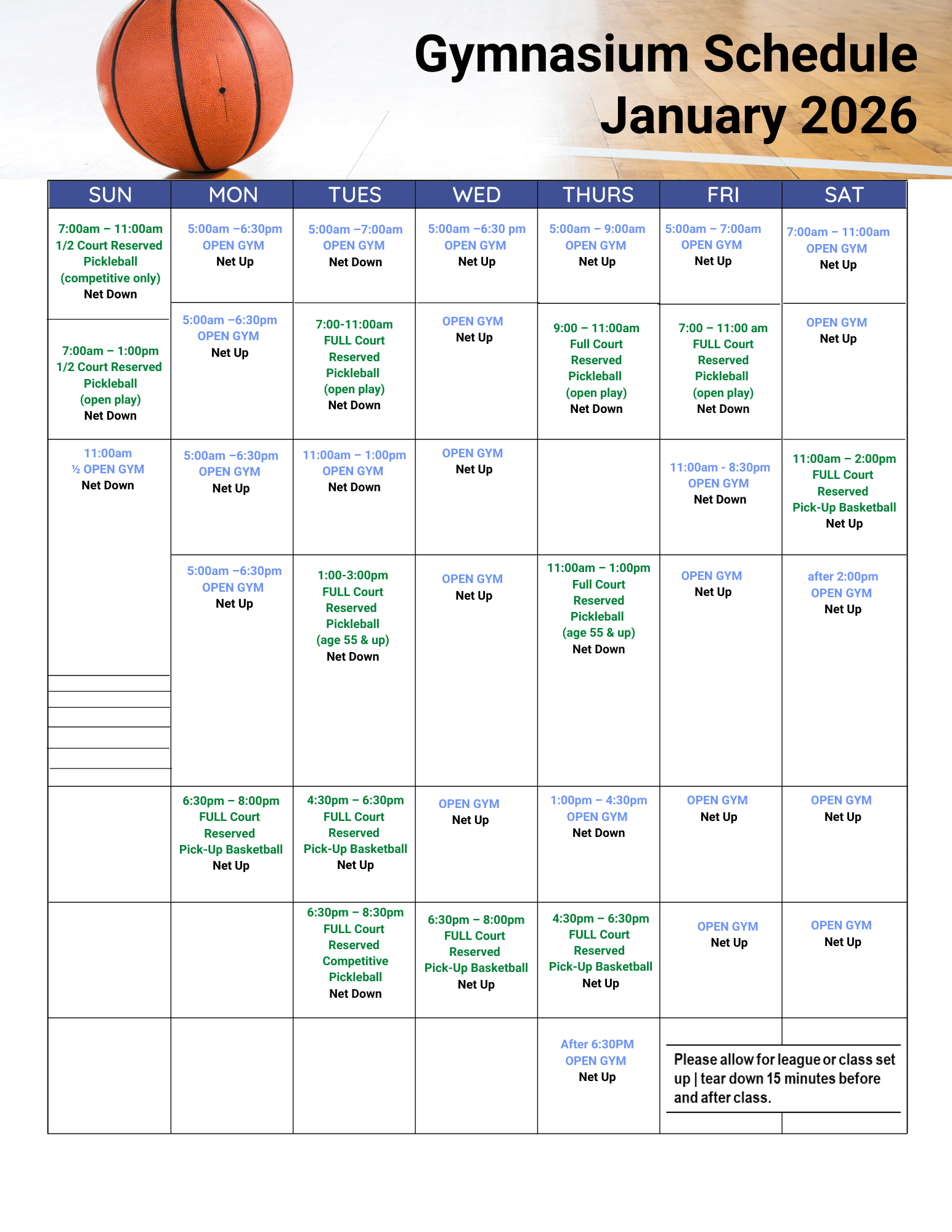 BASKETBALL COURT SCHEDULE